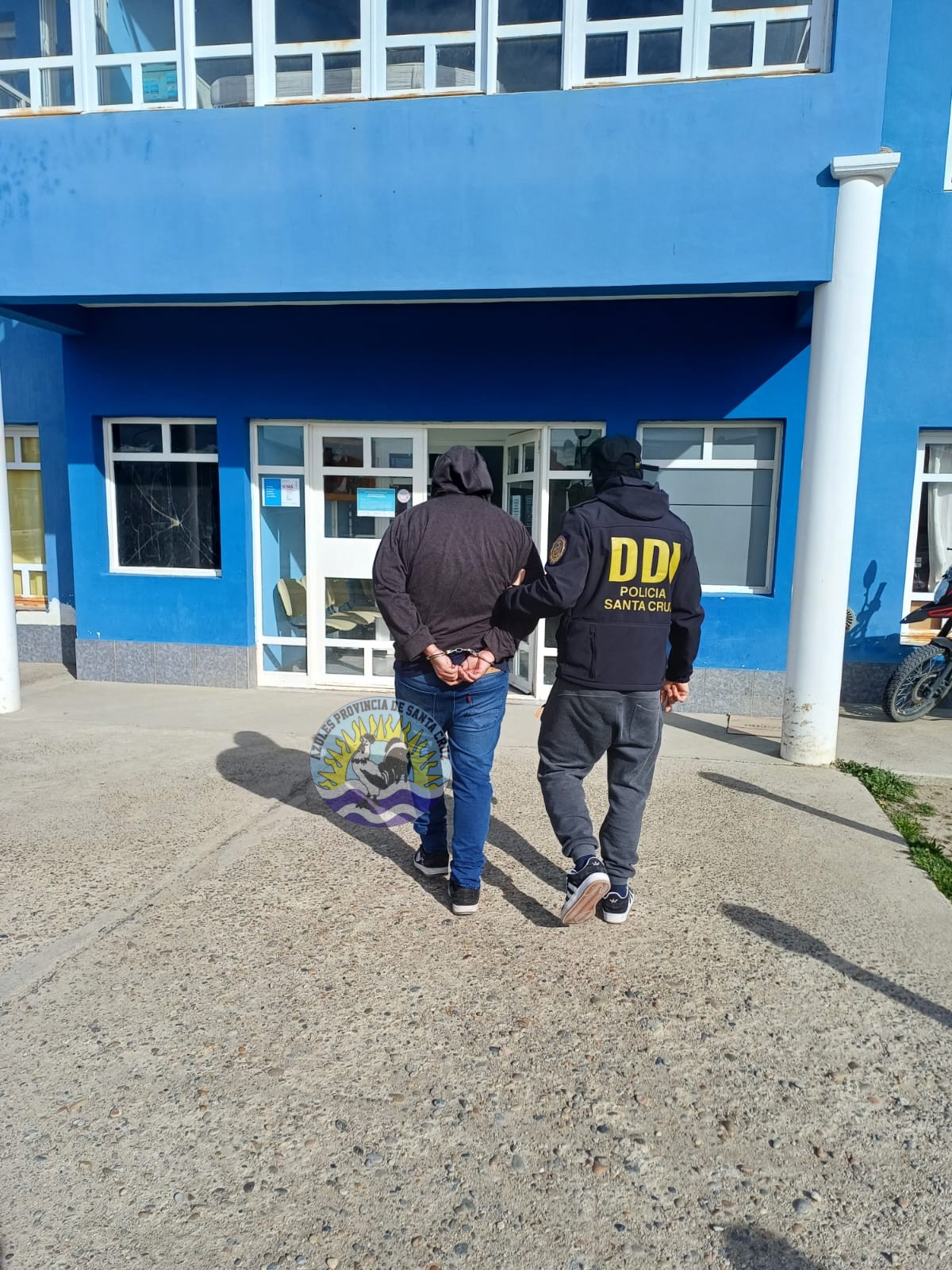 Durante el allanamiento, se procedió a la detención de un hombre de 32 años, quien quedó detenido en carácter comunicado y a disposición del Juzgado interviniente. El imputado fue trasladado a la Comisaría Segunda de Puerto San Julián, donde permanecerá bajo custodia mientras avanza la investigación.