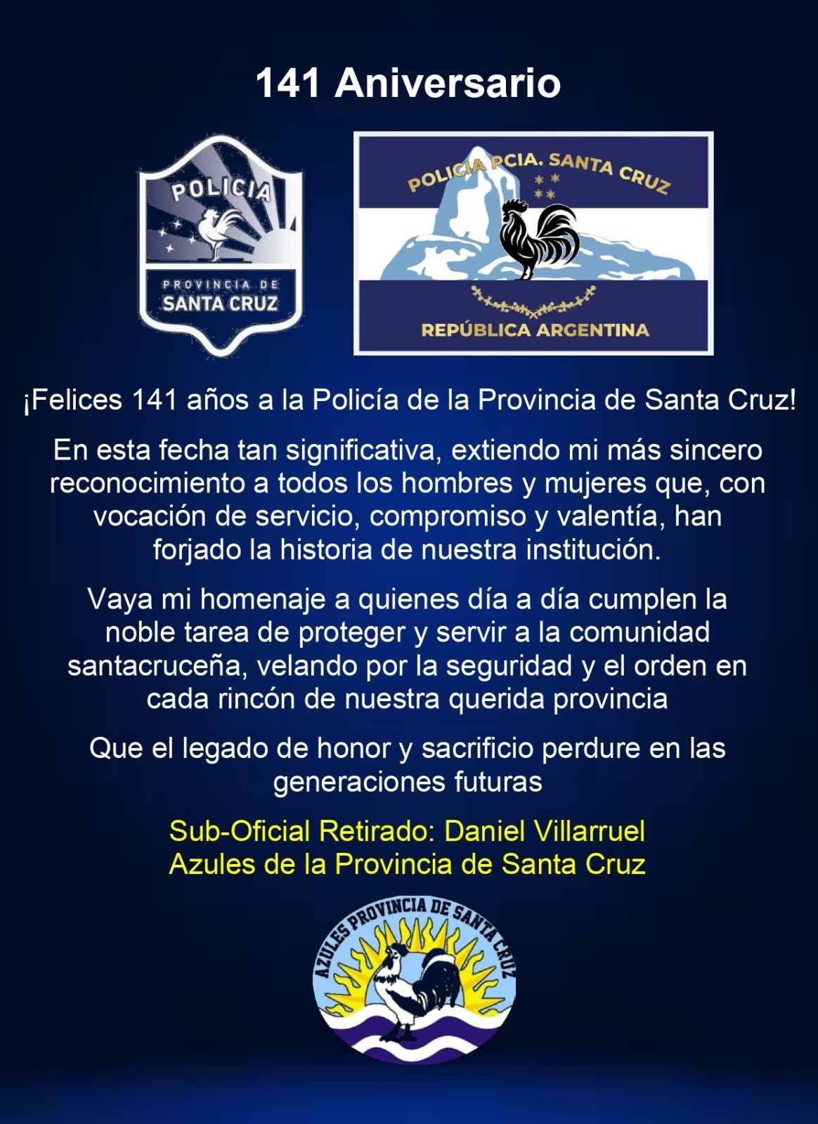 ¡Felices 141 años a la Policía de la Provincia de Santa Cruz!