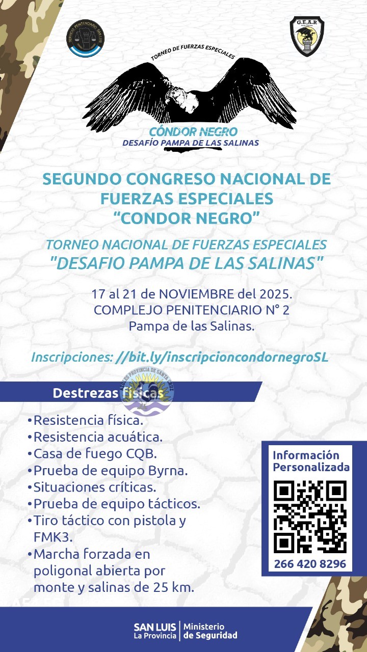 Quienes obtuvieron en la provincia de San Luis el 1er Puesto 🏆 en el “TORNEO NACIONAL DE FUERZAS ESPECIALES ” , “CONDOR NEGRO “, “DESAFIO PAMPA DE LAS SALINAS”. En esta competencia en donde se desarrollan distintas actividades con mucha exigencia física, destreza y trabajo en equipo nuestros representantes de Zona Norte y de la Provincia de Santa Cruz fueron quienes lograron el podio después de cuatro (04) dias de durisimos desafíos. Por tal motivo felicito y destacó a los siguientes camaradas: