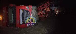 RÍO GALLEGOS – DESPISTE Y VUELCO DE CAMIONES EN RUTA NACIONAL N° 3