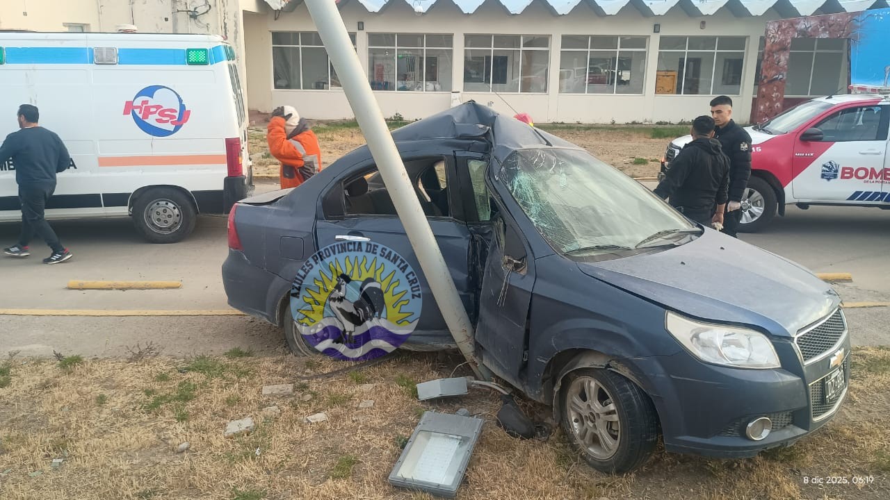 De acuerdo con la certificación médica, el conductor fue ingresado al nosocomio local con lesiones que requieren control y seguimiento, mientras que el acompañante presentaba politraumatismos de gravedad, siendo estabilizado y posteriormente derivado a un centro de mayor complejidad en la ciudad de Río Gallegos.